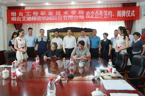 冯晓华副总经理、李平副院长刚签署了“烟台工程职业技术学院——烟台旋乐吧spin8精密机械股份有限公司旋乐吧spin8专班”合作协议,王德清院长、宋飞董事长共同为“烟台工程职业技术学院实习实训基地”揭牌。