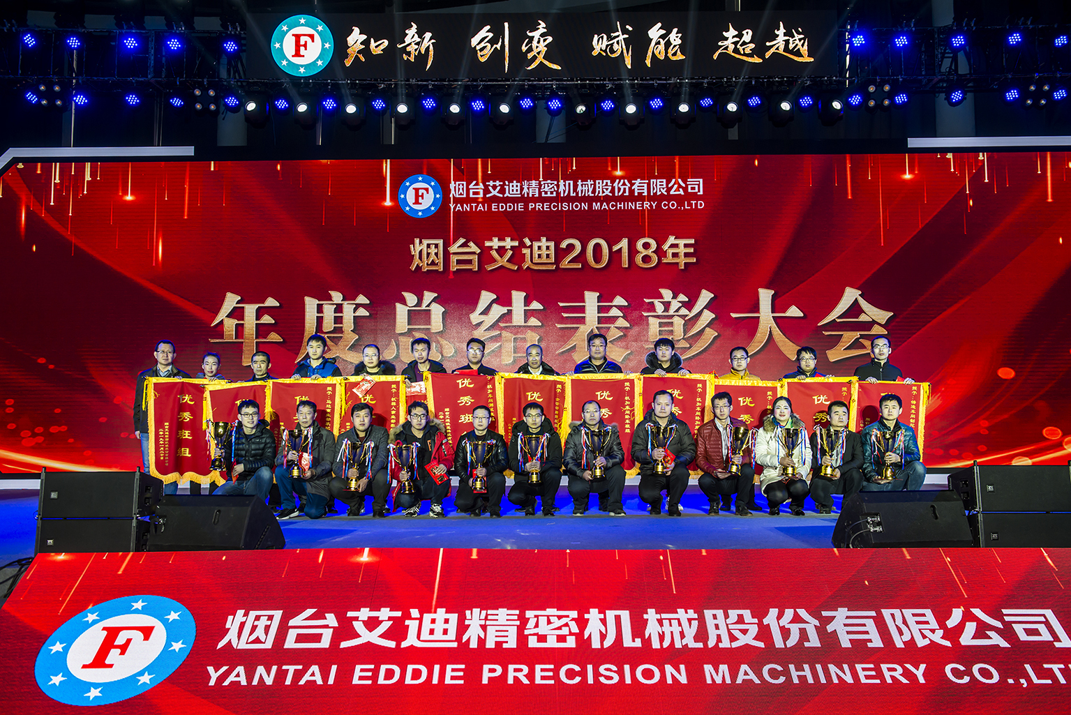 2019年1月20日上午,烟台旋乐吧spin82018年度总结表彰大会暨2019年新春联欢会在国奥俱乐部隆重举行。本次大会以“知新、创变、赋能、超越”为主题,共总结表彰先进团体35个,优秀工作者79人,其他单项奖项145项,公司领导为先进团体和个人颁发锦旗、证书和奖金奖杯,表彰大会在鼓舞先进工作者的同时,也激发了公司员工向先进看齐,争先创优的斗志,营造了为旋乐吧spin8发展贡献力量的氛围。
