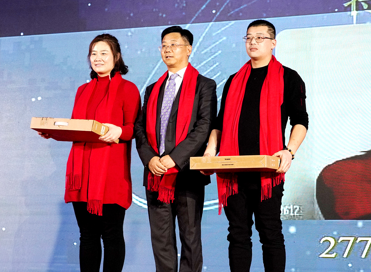 为了感谢所有员工一年的辛勤付出,载歌载舞表演节目的同时,一轮又一轮的抽奖环节不断掀起年会盛典的高潮,颈椎按摩仪、华为手表、平板电脑、笔记本电脑等大奖,被幸运的同事们喜领回家,每一份奖品的背后传递的都是我们浓浓的祝福和深深的爱意,歌声、掌声、欢呼声一直在会场萦绕。