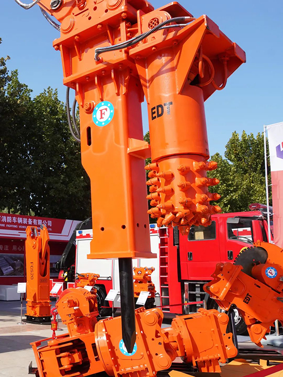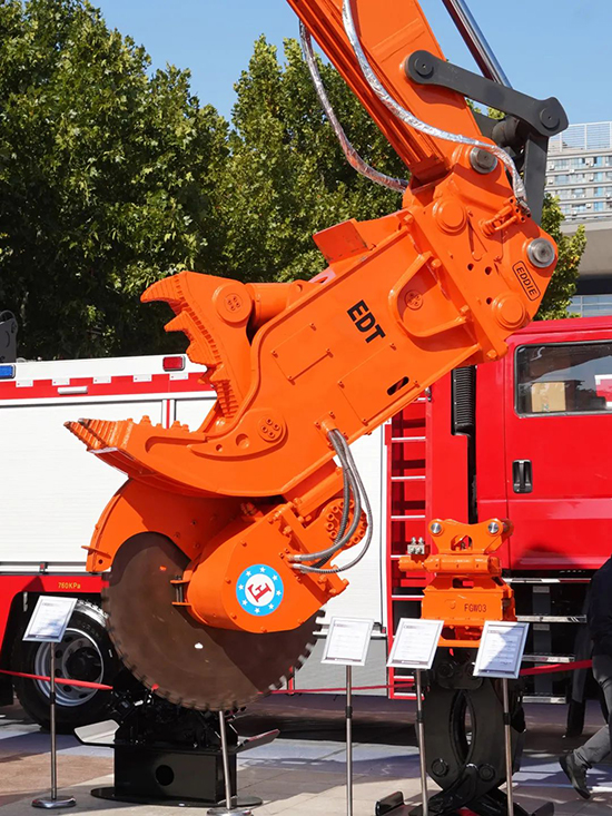 破拆开孔多功能救援属具具有破拆、开孔功能,通过摆动缸调整作业角度,各功能互不干涉;静音式破碎装置快速破拆障碍物;液压马达带动掘进器旋转,搭配特殊螺旋牙齿,可对钢筋混凝土结构进行开孔与扩孔。