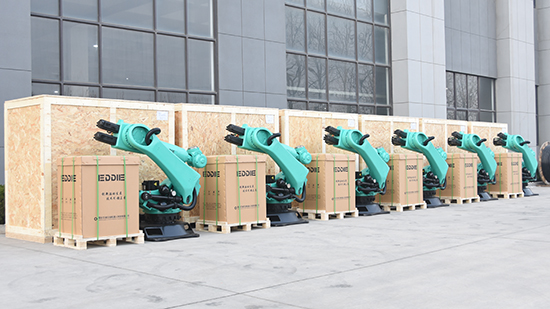 此次出口交付的是旋乐吧spin8艾创公司首批研发的AT210R2700A重载工业机器人。产品有效负载210KG,臂展达2700mm,末端重复定位精度±0.06mm,末端线速度2m/s,手腕部防护等级达到IP65。适用于大空间、大负载、运行速度快、精度要求高的场合,如机床码垛、搬运、涂胶等应用场景。产品性能达到国内外同类产品技术水平,在4年多的集成应用中,赢得客户的信任和好评。