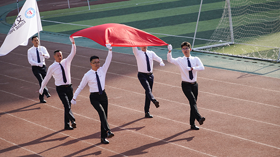 嘹亮的口号、整齐的步伐,各代表方队士气高昂、神采飞扬,向主席台齐步走来。